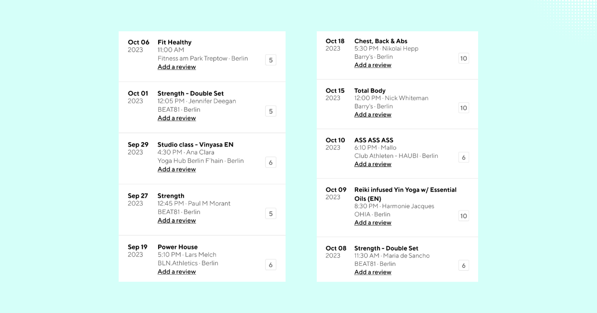 I find ClassPass in Germany to be a fun and cost-effective way to explore my city’s fitness scene without committing to an expensive membership or paying high drop-in fees in premium fitness studios. The variety of studios keeps things interesting, and I appreciate the flexibility. If you're curious about trying new studios or looking to begin your fitness journey, start with the ClassPass free trial – it might be exactly what you need!