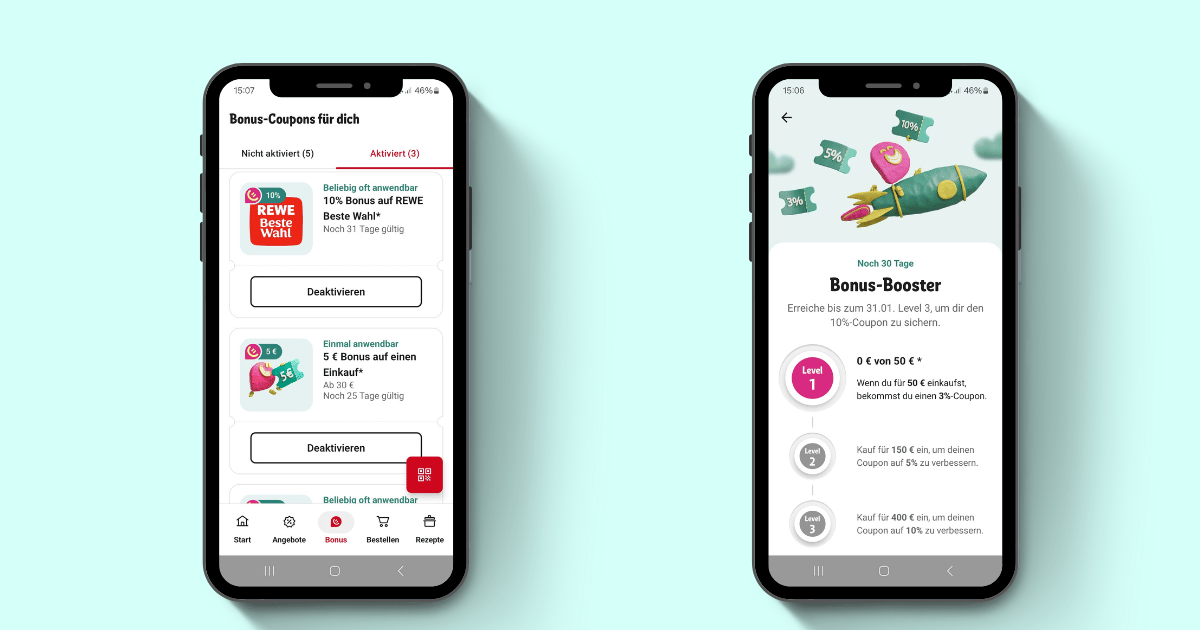 Rewe is not part of the Payback program anymore, so now you can find all the offers and discount coupons in the Rewe app. Before you head to the store (or while you're wandering the aisles), take a moment to browse through the offers and activate bonus coupons you’d like to use. Scan the QR code in your app at checkout to apply discounts to make your shopping in Rewe less expensive.